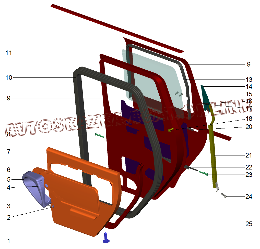 | Название детали: | Направляющая опускного стекла задней правой двери |