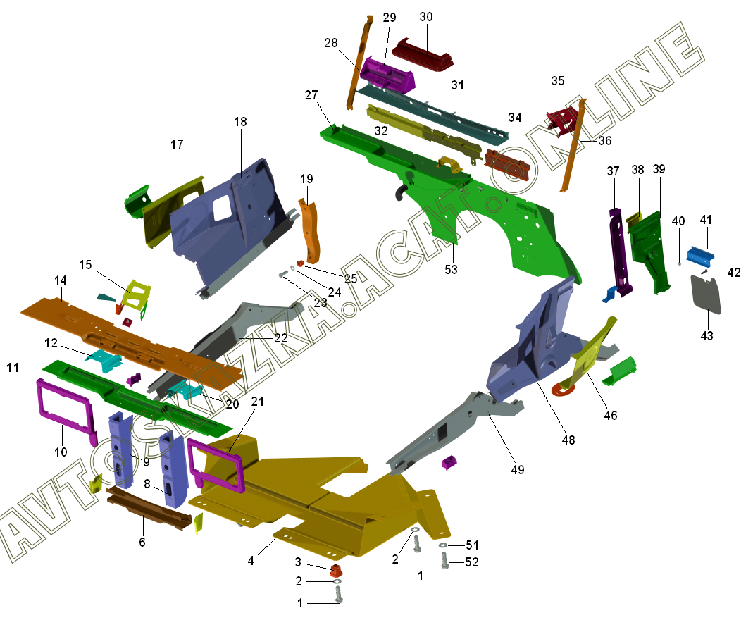 Каркас передка со щитками, брызговиками и рамкой радиатора ВАЗ 2107 (2107-21, 21074-21, 21074-30)