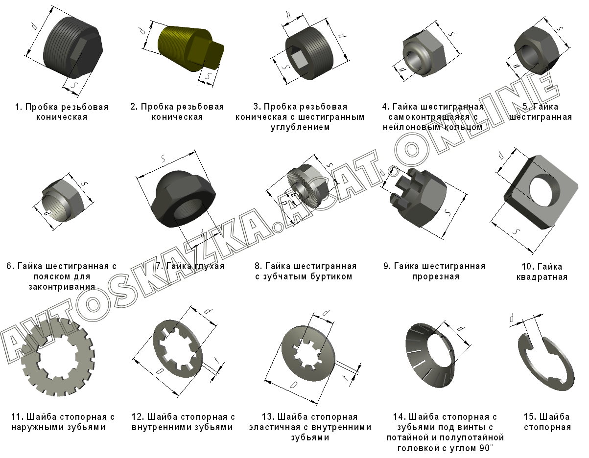 | Название детали: | Гайка шестигранная с зубчатым буртиком (d=М6, D=16,7, s=10) |