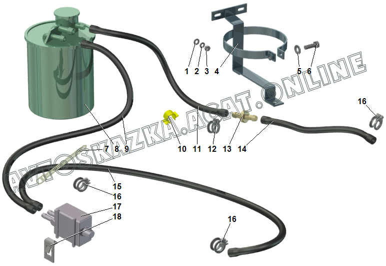 Система улавливания паров бензина (Е-3)(Е-4) ВАЗ 2110 (2110, 21101, 21101-01, 21101-02, 21101-51, 21101-52, 21102, 21103, 21104, 21104-01, 21104-02, 21104-03, 21104-51, 21104-52, 21104-53 )
