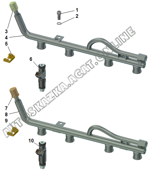 Рампа и форсунки ВАЗ 2110 (2110, 21101, 21101-01, 21101-02, 21101-51, 21101-52, 21102, 21103, 21104, 21104-01, 21104-02, 21104-03, 21104-51, 21104-52, 21104-53 )