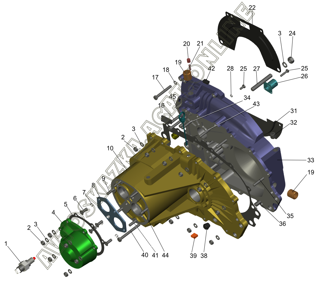 Картер коробки передач, картер сцепления ВАЗ 2110 (2110, 21101, 21101-01, 21101-02, 21101-51, 21101-52, 21102, 21103, 21104, 21104-01, 21104-02, 21104-03, 21104-51, 21104-52, 21104-53 )