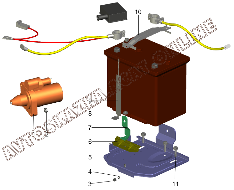 Батарея аккумуляторная и стартер ВАЗ 2110 (2110, 21101, 21101-01, 21101-02, 21101-51, 21101-52, 21102, 21103, 21104, 21104-01, 21104-02, 21104-03, 21104-51, 21104-52, 21104-53 )