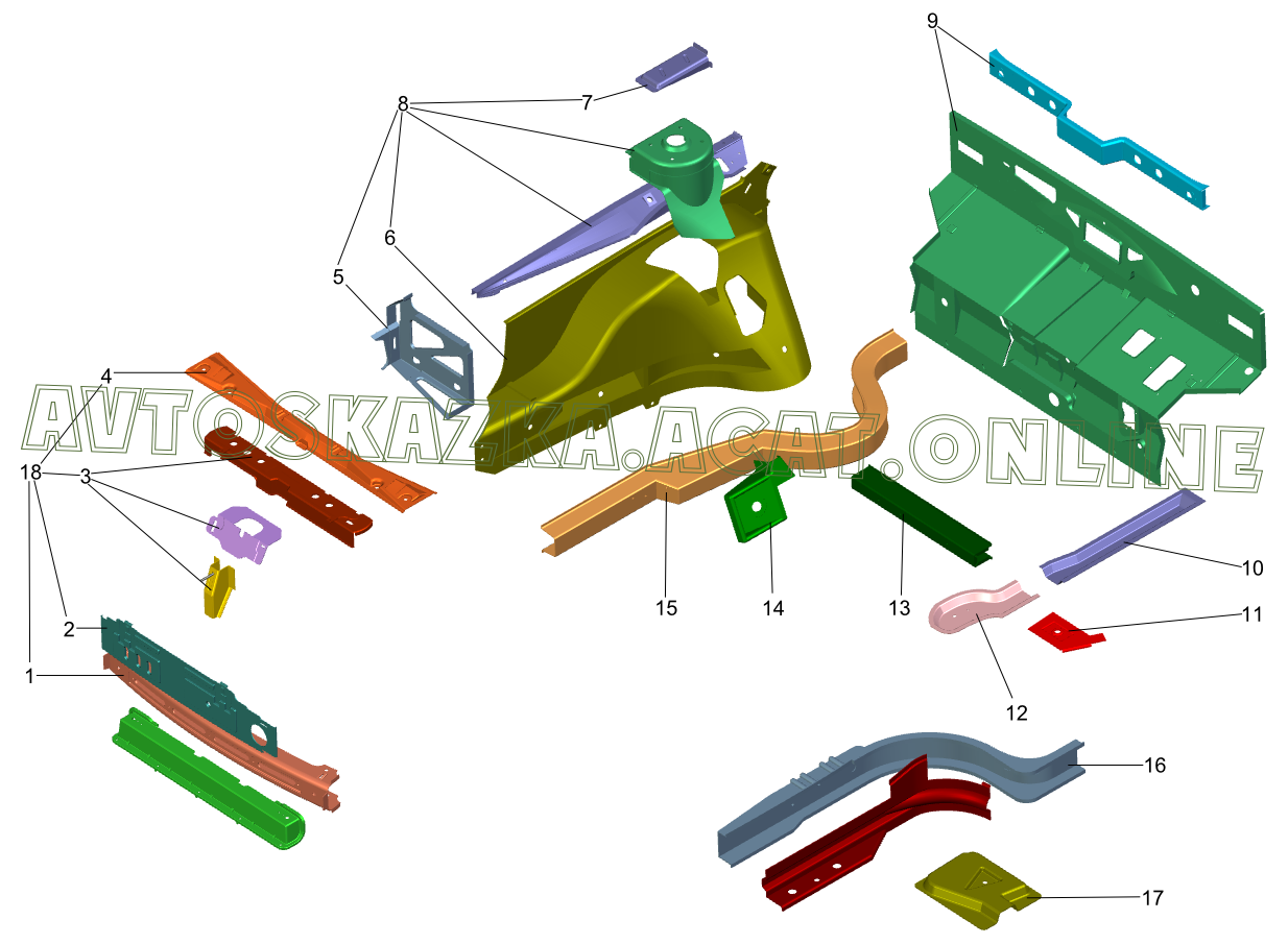 Каркас передка ВАЗ 2110 (2110, 21101, 21101-01, 21101-02, 21101-51, 21101-52, 21102, 21103, 21104, 21104-01, 21104-02, 21104-03, 21104-51, 21104-52, 21104-53 )