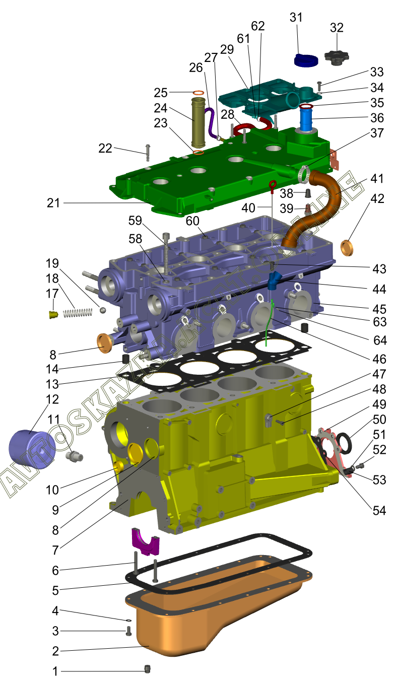 Блок цилиндров, головка, картер и крышки блока 16-клапанный двигатель ВАЗ 2111 (2111, 21112, 21112-01, 21112-02, 21112-51, 21112-52, 21113, 21114, 21114-01, 21114-02, 21114-51, 21114-52)