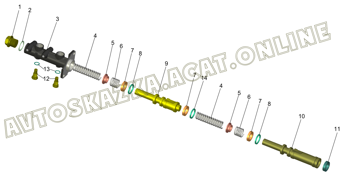 Главный цилиндр гидротормозов ВАЗ 2111 (2111, 21112, 21112-01, 21112-02, 21112-51, 21112-52, 21113, 21114, 21114-01, 21114-02, 21114-51, 21114-52)