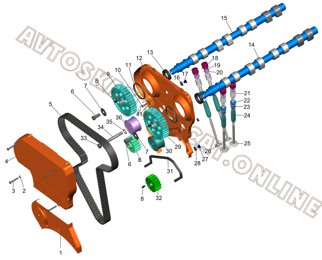 Механизм газораспределительный, привод распределительного вала 16-клапанный двигатель