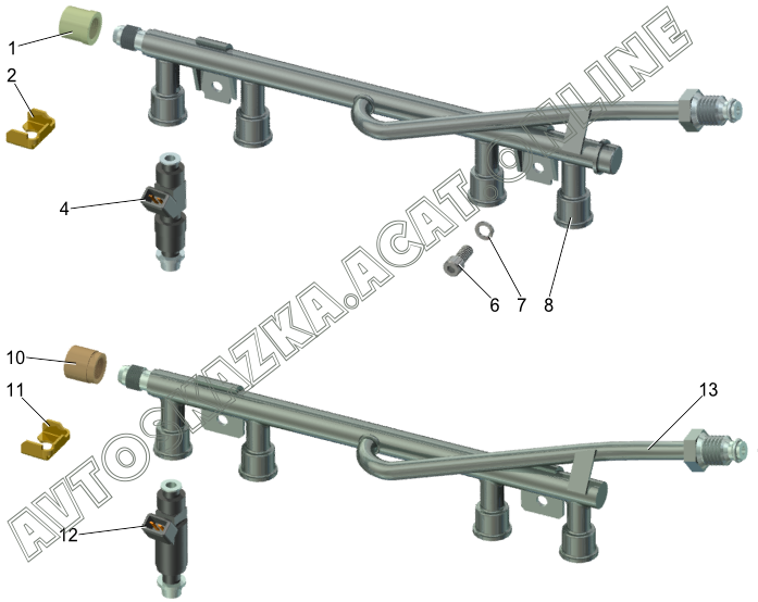 Рампа и форсунки ВАЗ 2112 (2112, 21121, 21121-01, 21121-02, 21121-51, 21121-52, 21124, 21124-01, 21124-02, 21124-51, 21124-52)
