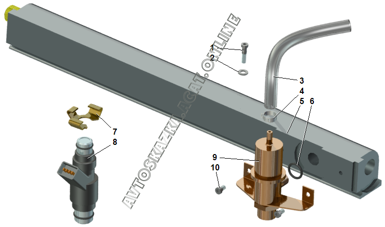 Рампа, форсунки и регулятор давления ВАЗ 2112 (2112, 21121, 21121-01, 21121-02, 21121-51, 21121-52, 21124, 21124-01, 21124-02, 21124-51, 21124-52)