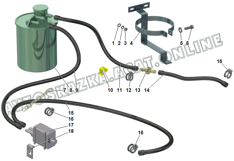 Система улавливания паров бензина (Е-3)(Е-4) ВАЗ 2112 (2112, 21121, 21121-01, 21121-02, 21121-51, 21121-52, 21124, 21124-01, 21124-02, 21124-51, 21124-52)