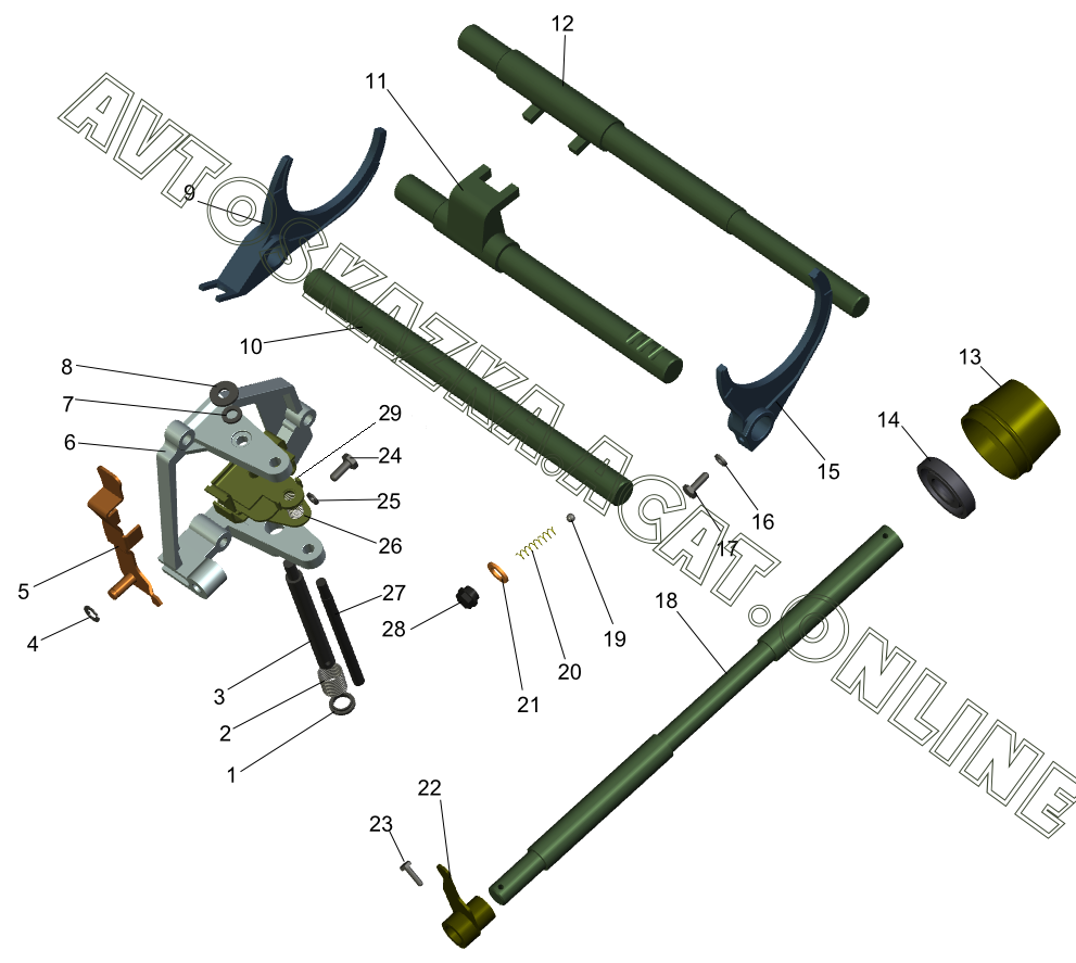 Механизм выбора и переключения передач ВАЗ 2112 (2112, 21121, 21121-01, 21121-02, 21121-51, 21121-52, 21124, 21124-01, 21124-02, 21124-51, 21124-52)