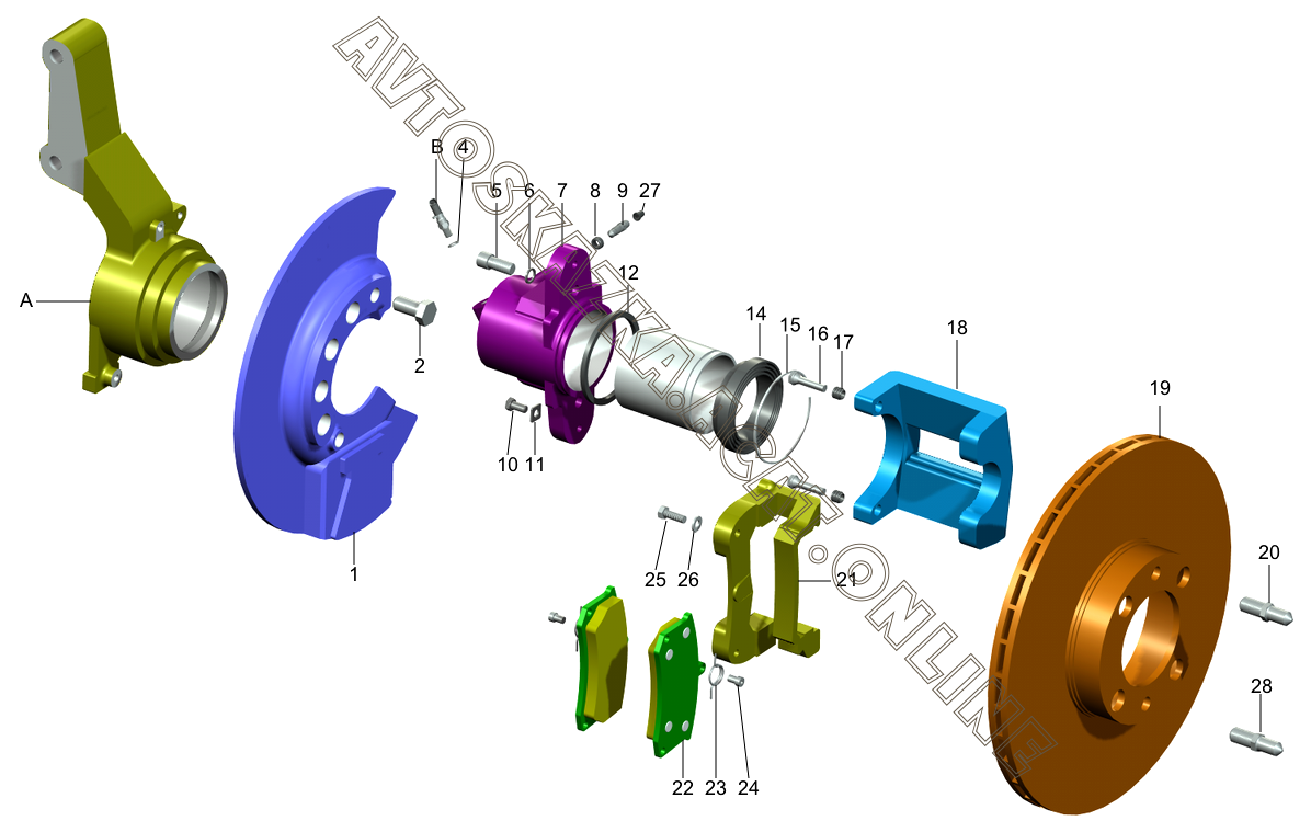 Тормоза передние ВАЗ 2112 (2112, 21121, 21121-01, 21121-02, 21121-51, 21121-52, 21124, 21124-01, 21124-02, 21124-51, 21124-52)