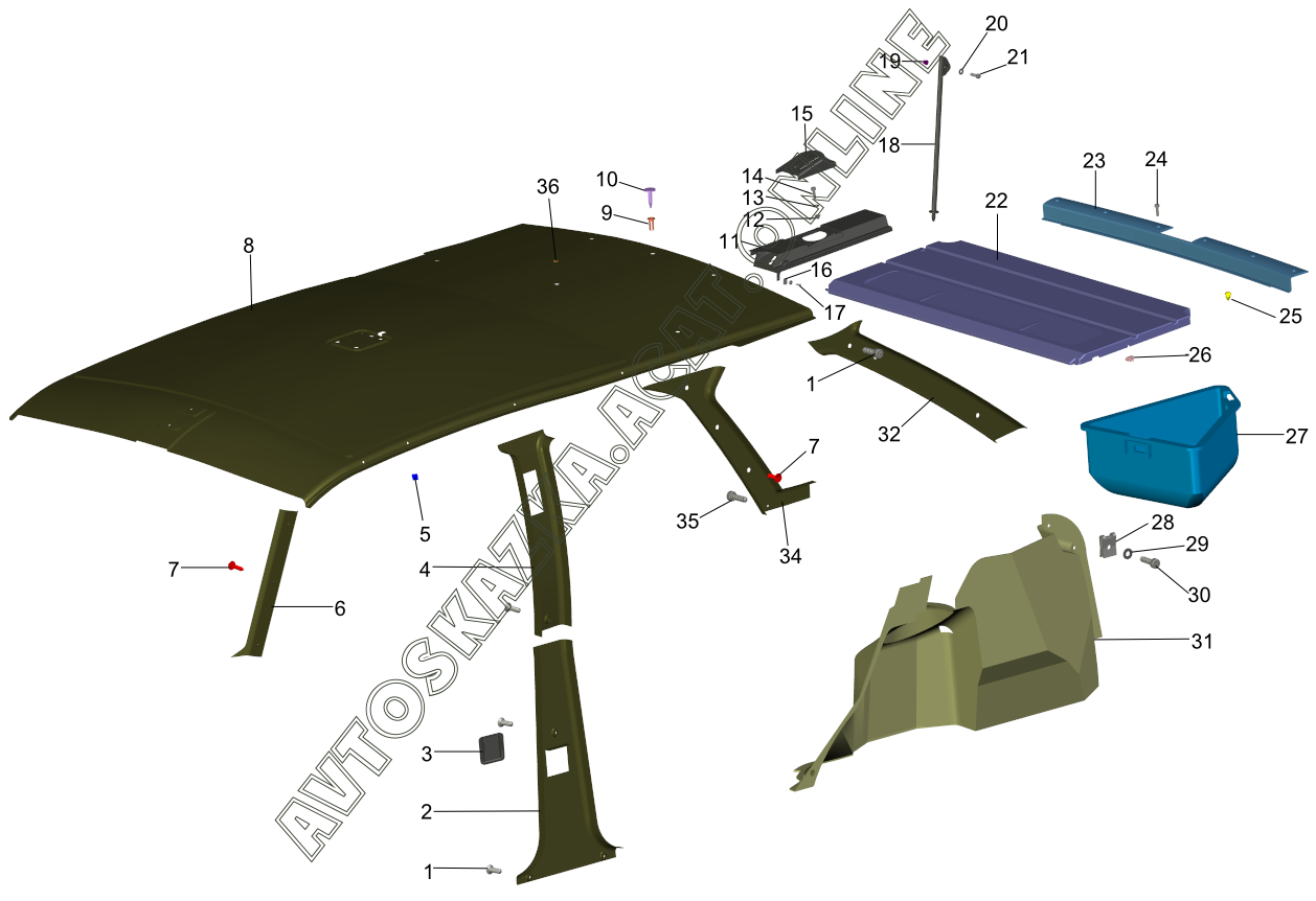 | Название детали: | Обивка крыши в сборе |