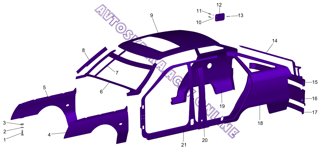 Панели кузова 2112 ВАЗ 2112 (2112, 21121, 21121-01, 21121-02, 21121-51, 21121-52, 21124, 21124-01, 21124-02, 21124-51, 21124-52)