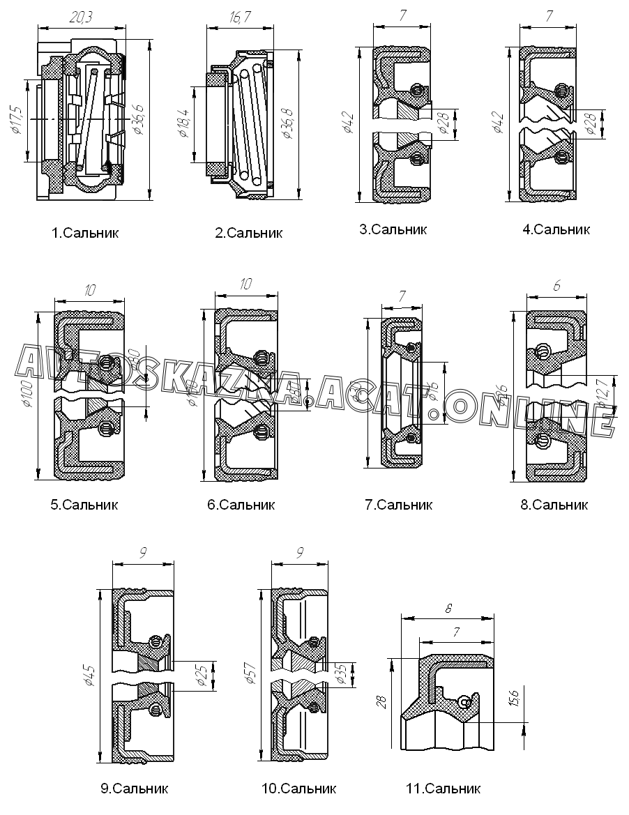 | Название детали: | Сальник (D=42, d=28, В=7) |