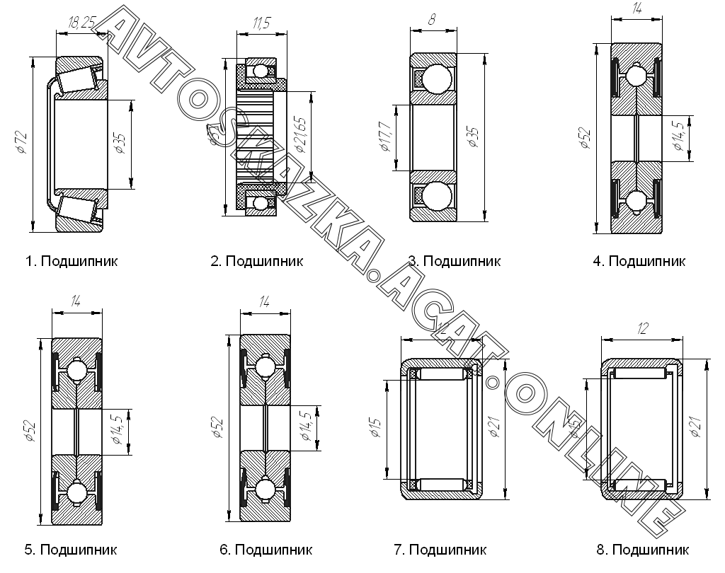 Подшипники ВАЗ 2112 (2112, 21121, 21121-01, 21121-02, 21121-51, 21121-52, 21124, 21124-01, 21124-02, 21124-51, 21124-52)
