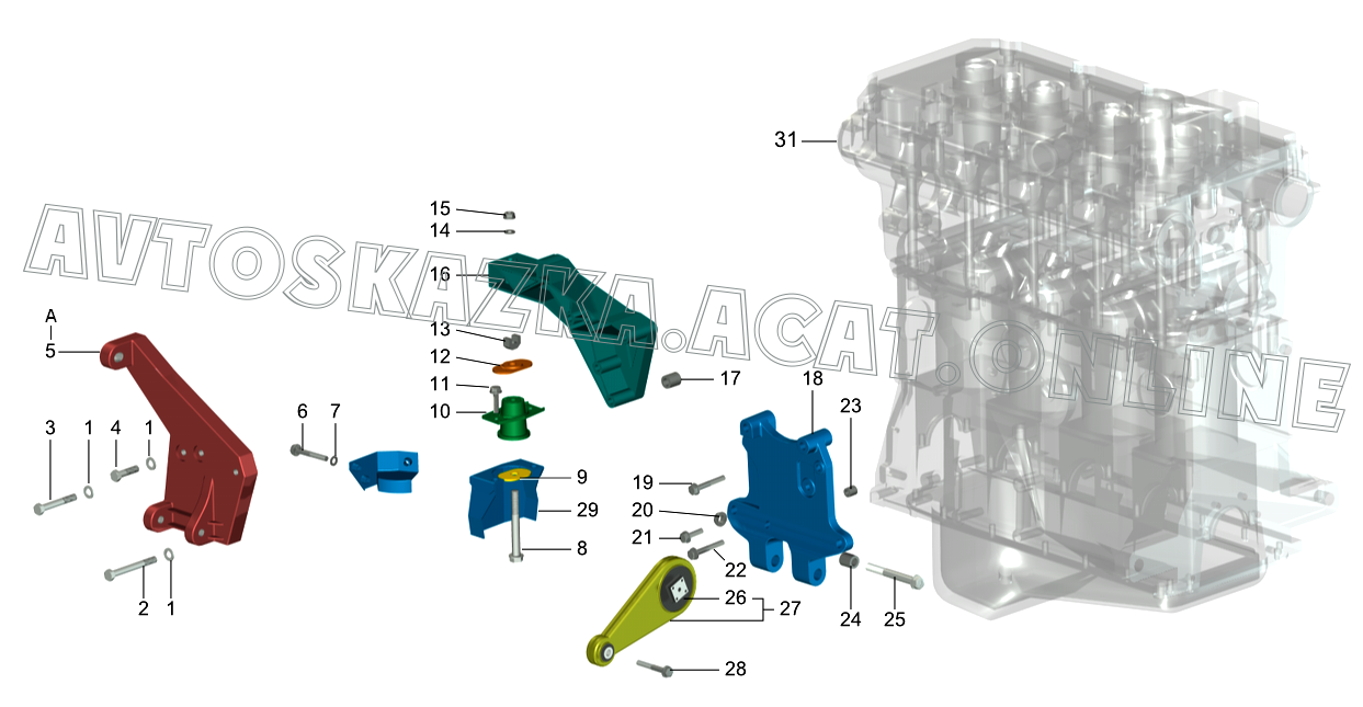 | Название детали: | Кронштейн правой опоры двигателя с подушкой |