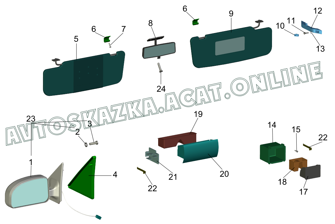 | Название детали: | Козырек противосолнечный левый |