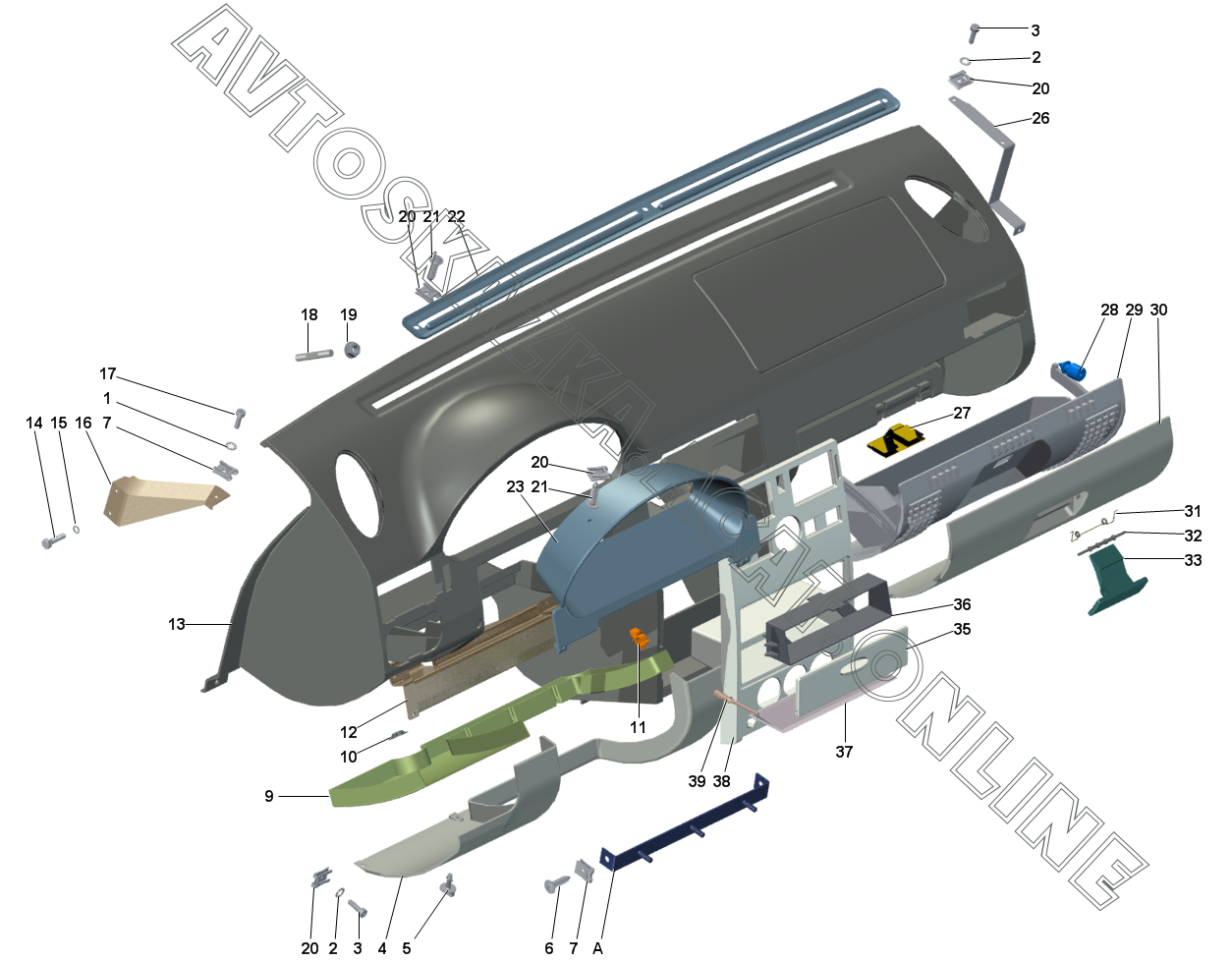 | Название детали: | Панель внутренняя крышки вещевого ящика |