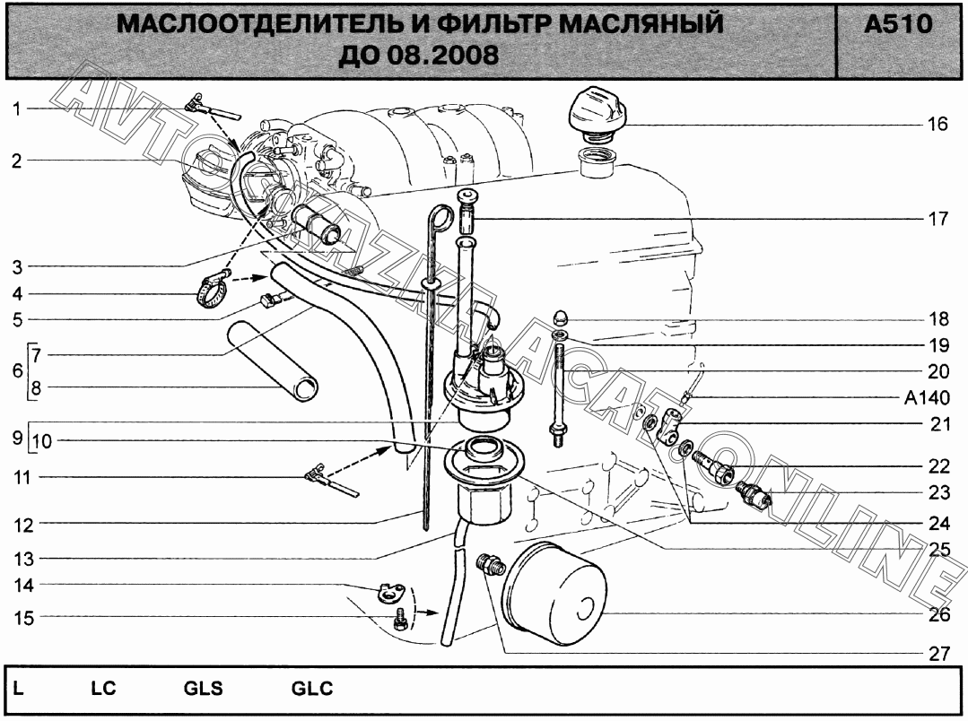 Маслоотделитель и фильтр масляный до 08.2008 ВАЗ 2123 (2123 "Шевроле-Нива")