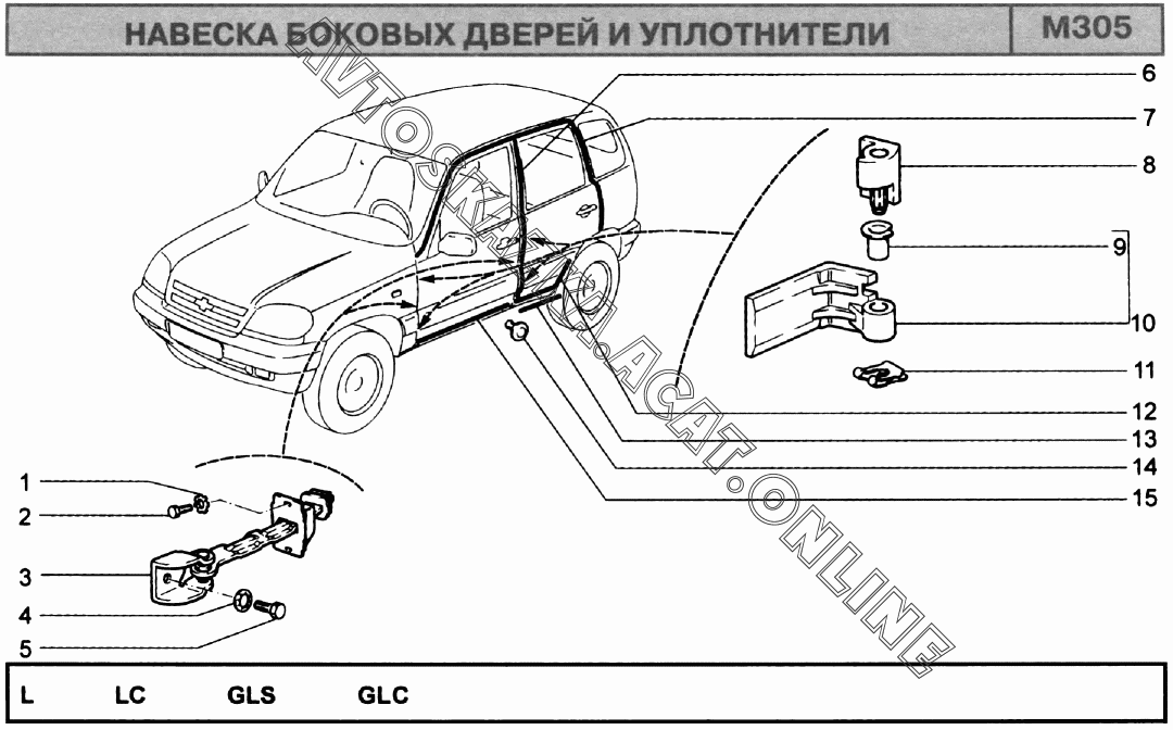Навеска боковых дверей и уплотнители ВАЗ 2123 (2123 "Шевроле-Нива")