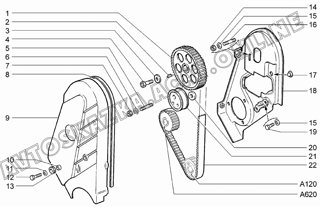 Привод распределительного вала ВАЗ 1117 (11173-30, 11173-31, 11173-33, 11173-40, 11173-41, 11173-43, 11174-30, 11174-33, 11174-40, 11174-43, 11174-50, 11174-53 - "Калина" (универсал))