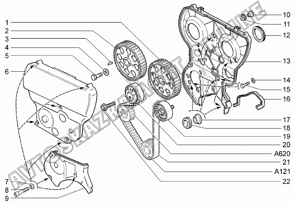 Привод распределительных валов ВАЗ 1117 (11173-30, 11173-31, 11173-33, 11173-40, 11173-41, 11173-43, 11174-30, 11174-33, 11174-40, 11174-43, 11174-50, 11174-53 - "Калина" (универсал))