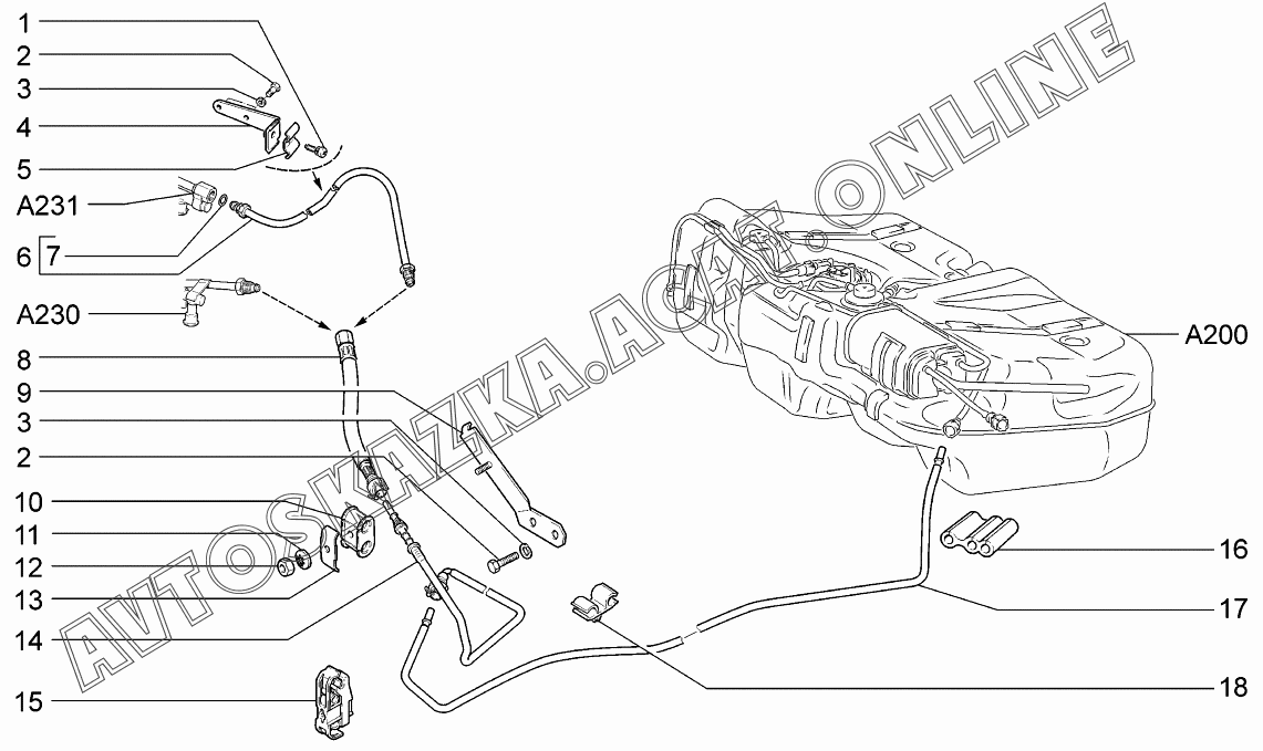 Трубопроводы топливные ВАЗ 1117 (11173-30, 11173-31, 11173-33, 11173-40, 11173-41, 11173-43, 11174-30, 11174-33, 11174-40, 11174-43, 11174-50, 11174-53 - "Калина" (универсал))