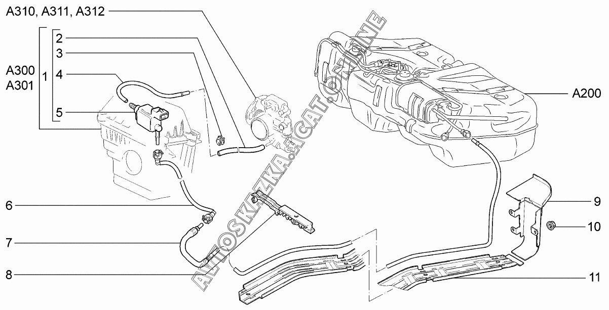 Система улавливания паров бензина ВАЗ 1117 (11173-30, 11173-31, 11173-33, 11173-40, 11173-41, 11173-43, 11174-30, 11174-33, 11174-40, 11174-43, 11174-50, 11174-53 - "Калина" (универсал))