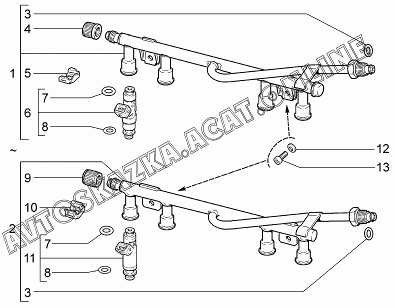 | Название детали: | Рампа форсунок в сборе |