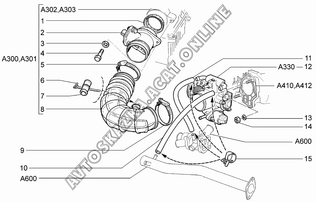 | Название детали: | Патрубок дроссельный в сборе |