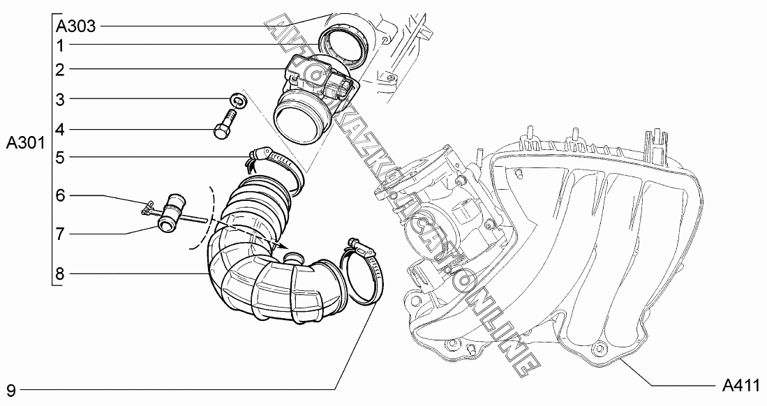 Система подачи воздуха (с электронной педалью акселератора) ВАЗ 1117 (11173-30, 11173-31, 11173-33, 11173-40, 11173-41, 11173-43, 11174-30, 11174-33, 11174-40, 11174-43, 11174-50, 11174-53 - "Калина" (универсал))