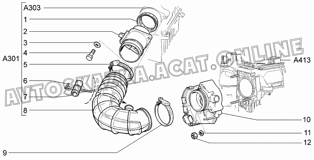 Система подачи воздуха (с электронной педалью акселератора) ВАЗ 1117 (11173-30, 11173-31, 11173-33, 11173-40, 11173-41, 11173-43, 11174-30, 11174-33, 11174-40, 11174-43, 11174-50, 11174-53 - "Калина" (универсал))