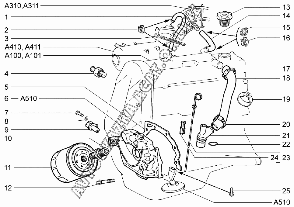 Система смазки и вентиляции ВАЗ 1117 (11173-30, 11173-31, 11173-33, 11173-40, 11173-41, 11173-43, 11174-30, 11174-33, 11174-40, 11174-43, 11174-50, 11174-53 - "Калина" (универсал))