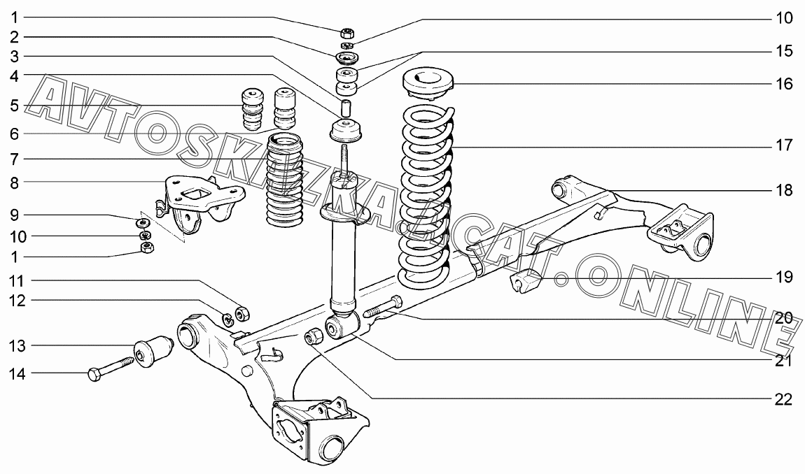 Подвеска задняя ВАЗ 1117 (11173-30, 11173-31, 11173-33, 11173-40, 11173-41, 11173-43, 11174-30, 11174-33, 11174-40, 11174-43, 11174-50, 11174-53 - "Калина" (универсал))