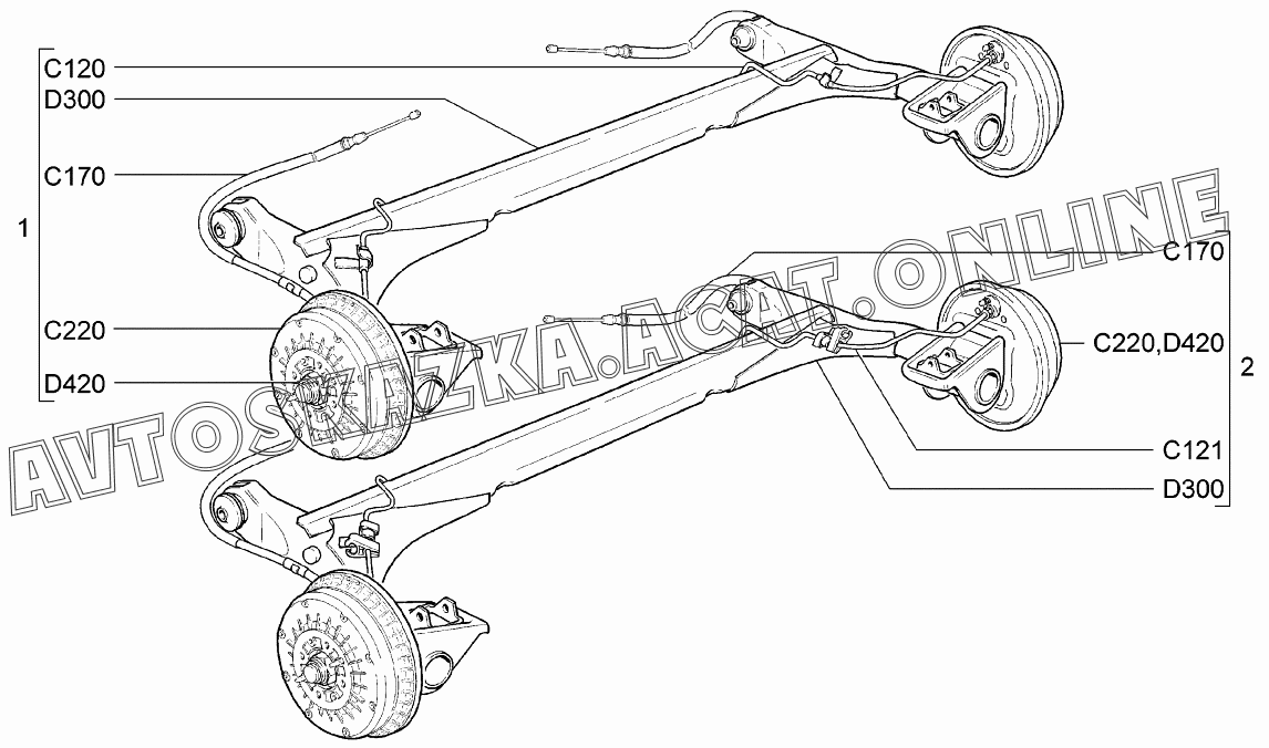 Рычаги задней подвески с тормозами ВАЗ 1117 (11173-30, 11173-31, 11173-33, 11173-40, 11173-41, 11173-43, 11174-30, 11174-33, 11174-40, 11174-43, 11174-50, 11174-53 - "Калина" (универсал))