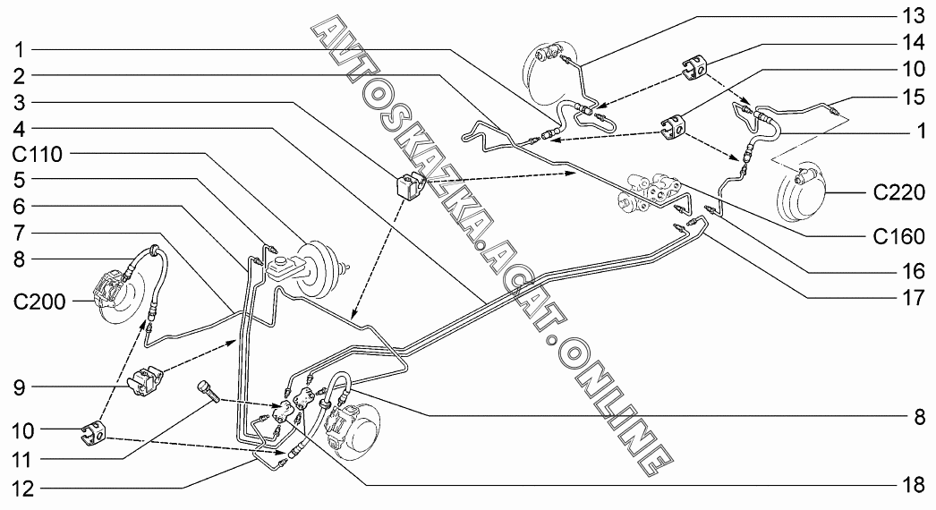 Привод гидротормозов ВАЗ 1117 (11173-30, 11173-31, 11173-33, 11173-40, 11173-41, 11173-43, 11174-30, 11174-33, 11174-40, 11174-43, 11174-50, 11174-53 - "Калина" (универсал))