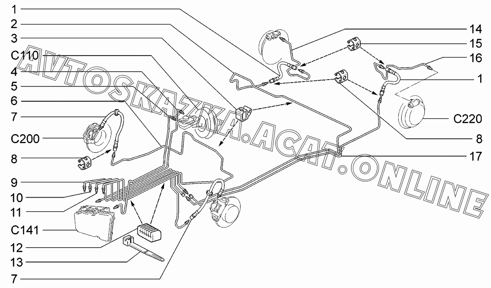 Привод гидротормозов (АБС) ВАЗ 1117 (11173-30, 11173-31, 11173-33, 11173-40, 11173-41, 11173-43, 11174-30, 11174-33, 11174-40, 11174-43, 11174-50, 11174-53 - "Калина" (универсал))