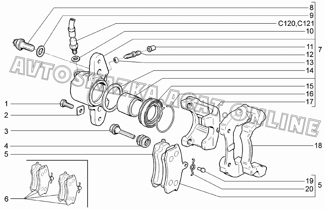 Элементы передних тормозов ВАЗ 1117 (11173-30, 11173-31, 11173-33, 11173-40, 11173-41, 11173-43, 11174-30, 11174-33, 11174-40, 11174-43, 11174-50, 11174-53 - "Калина" (универсал))