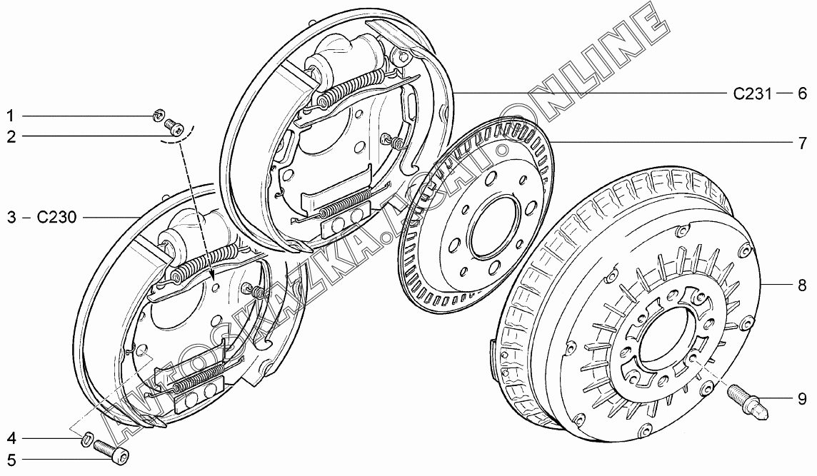 Тормоза задние ВАЗ 1117 (11173-30, 11173-31, 11173-33, 11173-40, 11173-41, 11173-43, 11174-30, 11174-33, 11174-40, 11174-43, 11174-50, 11174-53 - "Калина" (универсал))