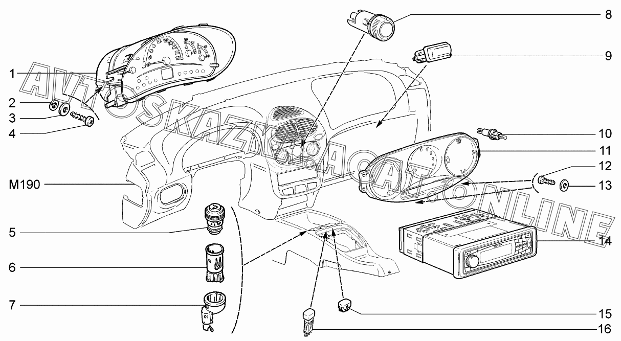 Приборы и подсветка ВАЗ 1117 (11173-30, 11173-31, 11173-33, 11173-40, 11173-41, 11173-43, 11174-30, 11174-33, 11174-40, 11174-43, 11174-50, 11174-53 - "Калина" (универсал))