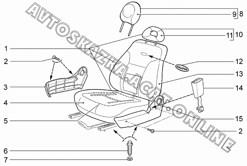 Сиденья передние ВАЗ 1117 (11173-30, 11173-31, 11173-33, 11173-40, 11173-41, 11173-43, 11174-30, 11174-33, 11174-40, 11174-43, 11174-50, 11174-53 - "Калина" (универсал))