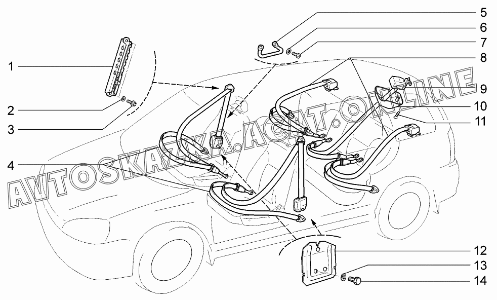 Ремни безопасности ВАЗ 1117 (11173-30, 11173-31, 11173-33, 11173-40, 11173-41, 11173-43, 11174-30, 11174-33, 11174-40, 11174-43, 11174-50, 11174-53 - "Калина" (универсал))