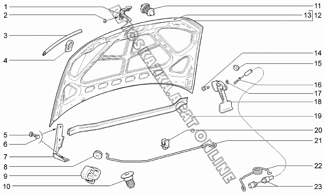Капот ВАЗ 1117 (11173-30, 11173-31, 11173-33, 11173-40, 11173-41, 11173-43, 11174-30, 11174-33, 11174-40, 11174-43, 11174-50, 11174-53 - "Калина" (универсал))