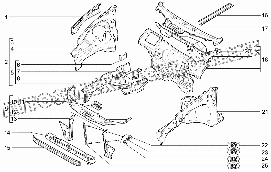 Элементы передка ВАЗ 1117 (11173-30, 11173-31, 11173-33, 11173-40, 11173-41, 11173-43, 11174-30, 11174-33, 11174-40, 11174-43, 11174-50, 11174-53 - "Калина" (универсал))