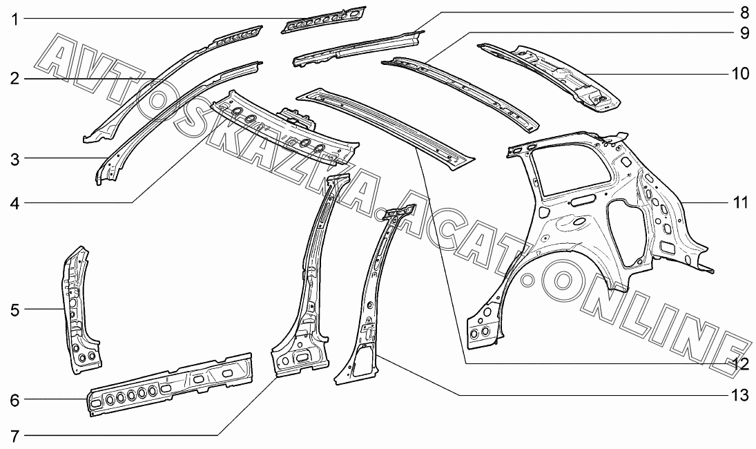 Элементы боковины и задка ВАЗ 1117 (11173-30, 11173-31, 11173-33, 11173-40, 11173-41, 11173-43, 11174-30, 11174-33, 11174-40, 11174-43, 11174-50, 11174-53 - "Калина" (универсал))
