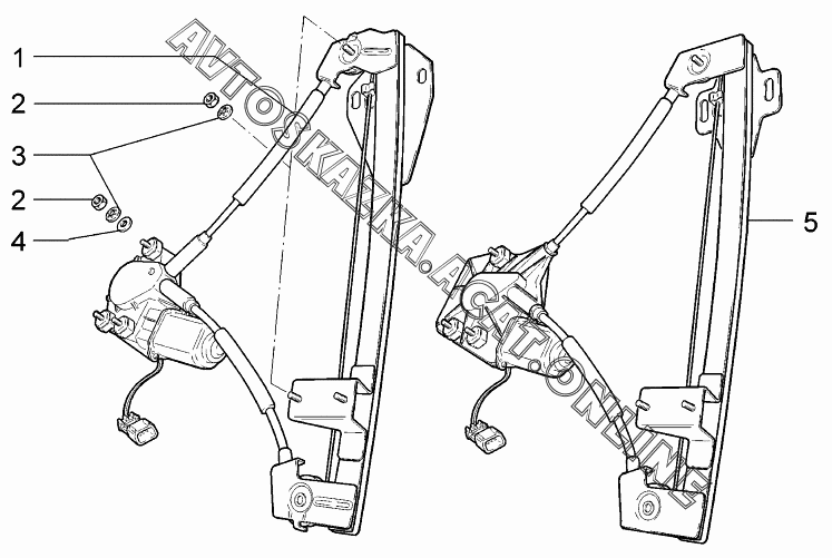Стеклоподъемники задних дверей ВАЗ 1117 (11173-30, 11173-31, 11173-33, 11173-40, 11173-41, 11173-43, 11174-30, 11174-33, 11174-40, 11174-43, 11174-50, 11174-53 - "Калина" (универсал))