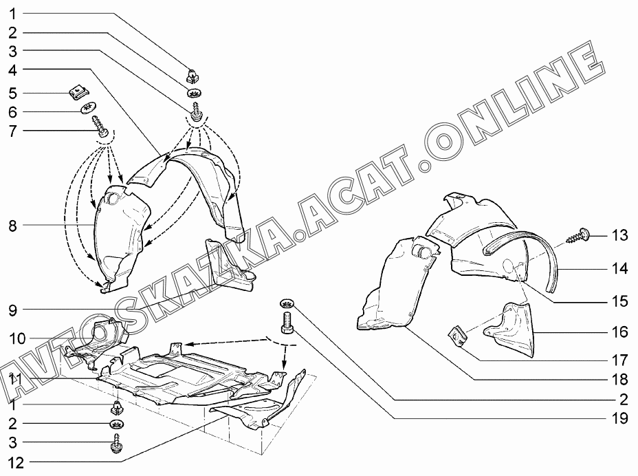 | Название детали: | Брызговик двигателя левый |
