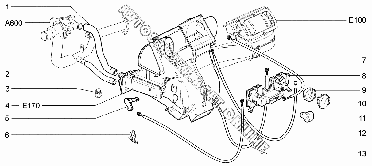 Отопитель с управлением и шлангами ВАЗ 1117 (11173-30, 11173-31, 11173-33, 11173-40, 11173-41, 11173-43, 11174-30, 11174-33, 11174-40, 11174-43, 11174-50, 11174-53 - "Калина" (универсал))