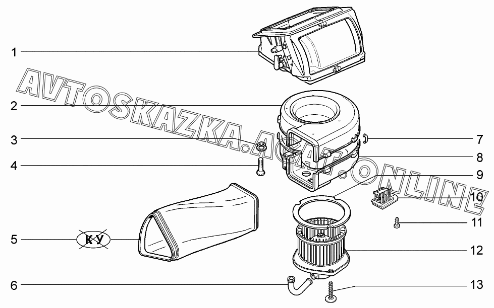 Вентилятор климатической установки ВАЗ 1117 (11173-30, 11173-31, 11173-33, 11173-40, 11173-41, 11173-43, 11174-30, 11174-33, 11174-40, 11174-43, 11174-50, 11174-53 - "Калина" (универсал))